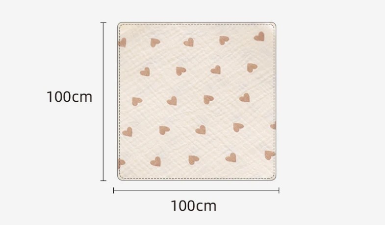 Μουσελίνα κουβέρτα 100 x 100 εκ. με σχέδιο καρδιών Απαλή αναπνεύσιμη βαμβακερή για μωρά Παιδική σαλιάρα Πετσέτα Υφασμάτινη πάνα
