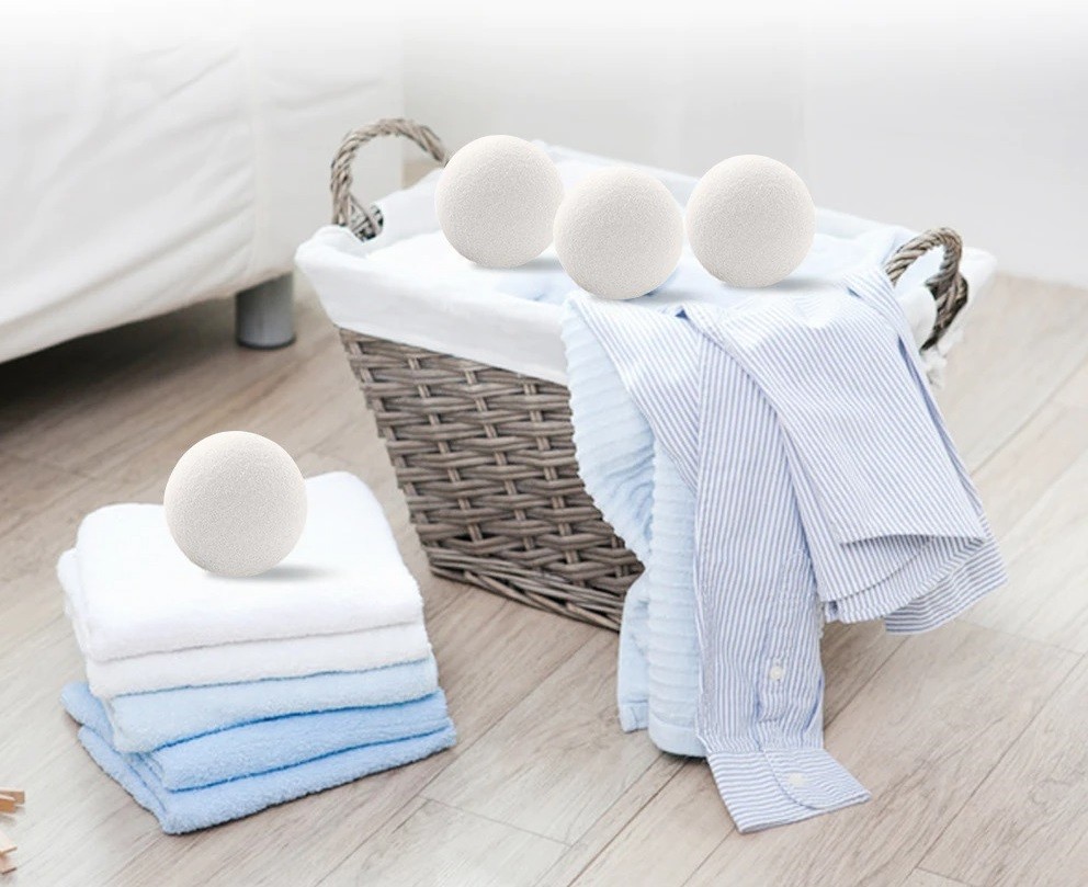 Αυτά τα μπαλάκια για στέγνωμα ρούχων είναι κατασκευασμένα από μαλλί προβάτου. Είναι υποαλλεργικά και φιλικά προς τα ρούχα σας. Βοηθούν επίσης να μαλακώνουν τα ρούχα σας. Μειώνουν τον ηλεκτροστατικό φορτίο, έτσι μπορείτε να είστε σίγουροι ότι τα ρούχα σας στεγνώνουν με ασφάλεια και φυσικά.