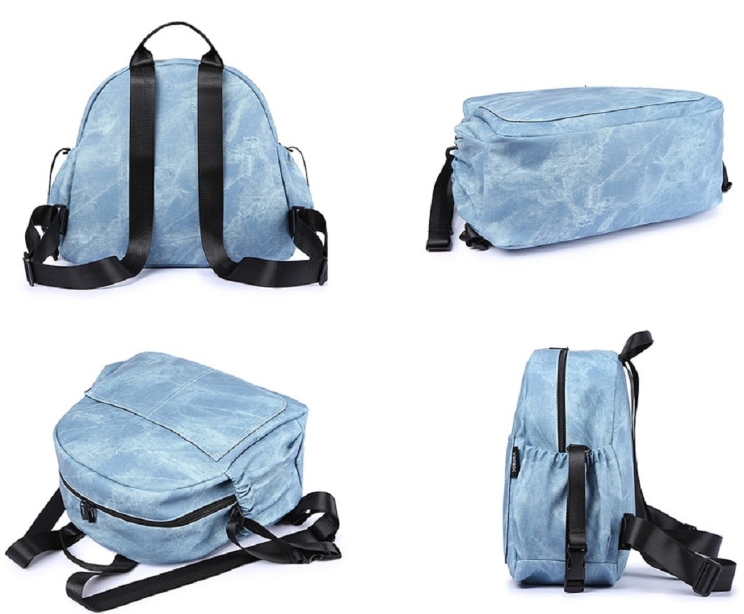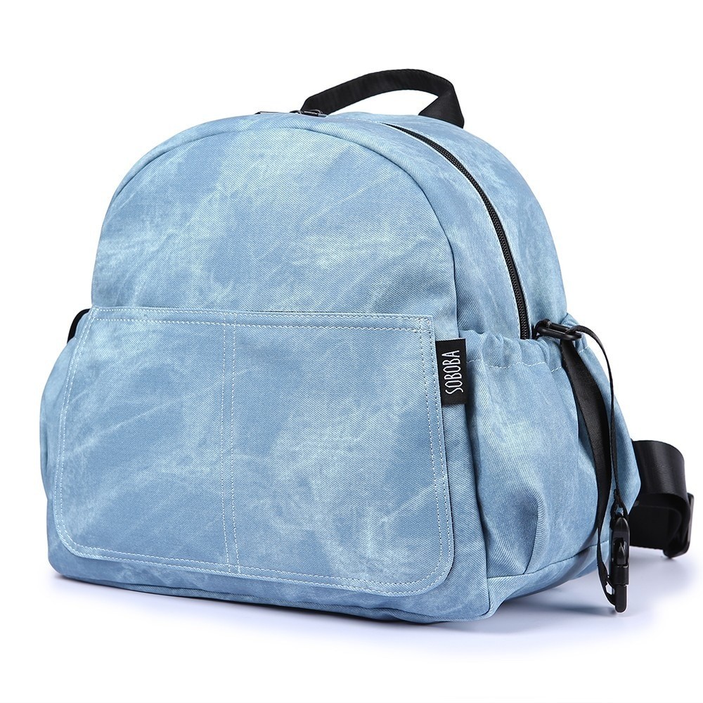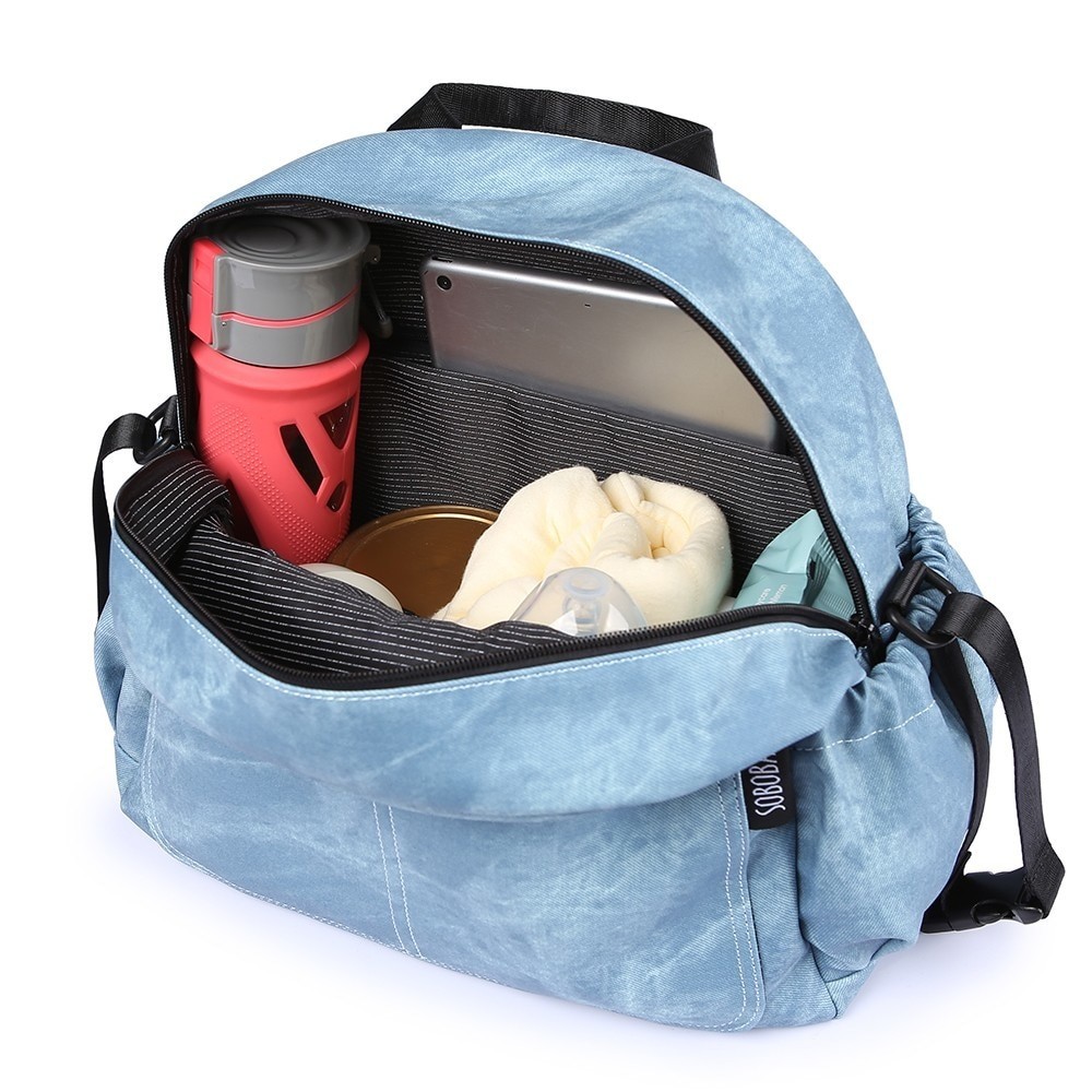 Μοντέρνα τσάντα μητρότητας για ανάγκες αλλαγής σε χρώμα τζιν.