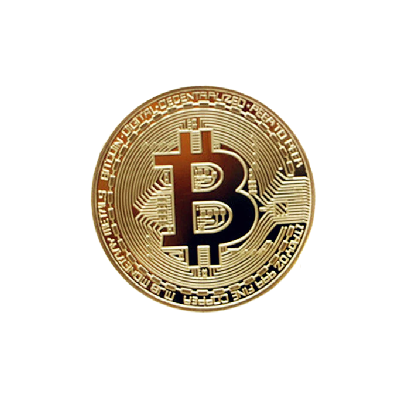 Συλλεκτικό νόμισμα Bitcoin, το οποίο είναι διπλής όψης. Στην μπροστινή πλευρά είναι το σύμβολο B. Στην πίσω πλευρά είναι ενσωματωμένο κύκλωμα. Είναι κατασκευασμένο από σίδηρο.