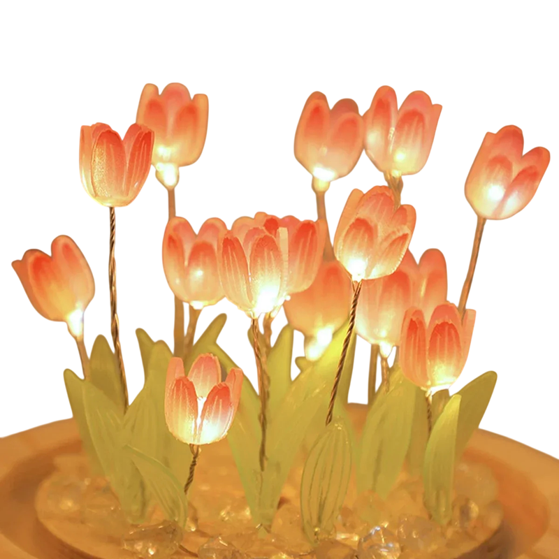 Διακοσμητικό νυχτερινό φως σε σχήμα θόλου με τουλίπες. 9 λουλούδια στη συσκευασία, ξύλινη βάση, DIY σύνθεση. Ιδανικό δώρο για λάτρεις των λουλουδιών και των χειροτεχνιών. Πλήρης περιγραφή