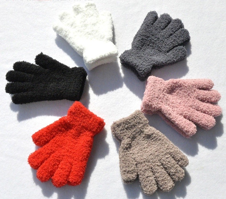Μονοχρωματικά παιδικά δαχτυλογάντια από μαλακό χνουδωτό υλικό.