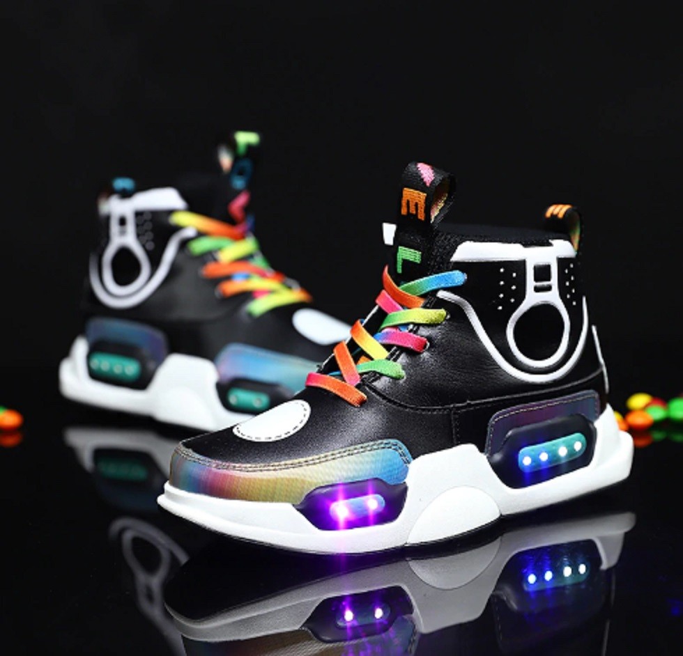 Τα παπούτσια διαθέτουν LED φώτα στη σόλα, τα οποία φορτίζονται μέσω USB.