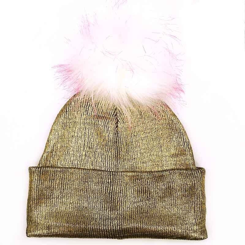 Παιδικό καπέλο σε μεταλλικό χρυσό χρώμα με χνουδωτή φούντα.