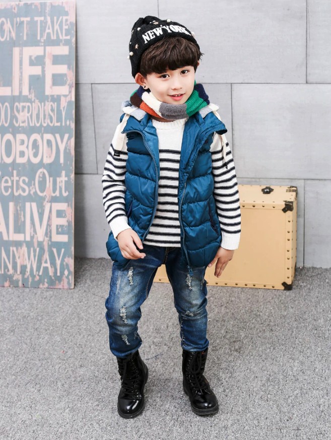 Παιδικό επενδυμένο γιλέκο με κουκούλα που προστατεύει το παιδί σας από τις δυσμενείς καιρικές συνθήκες.