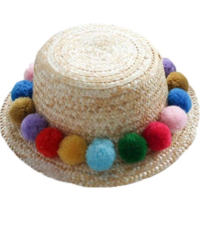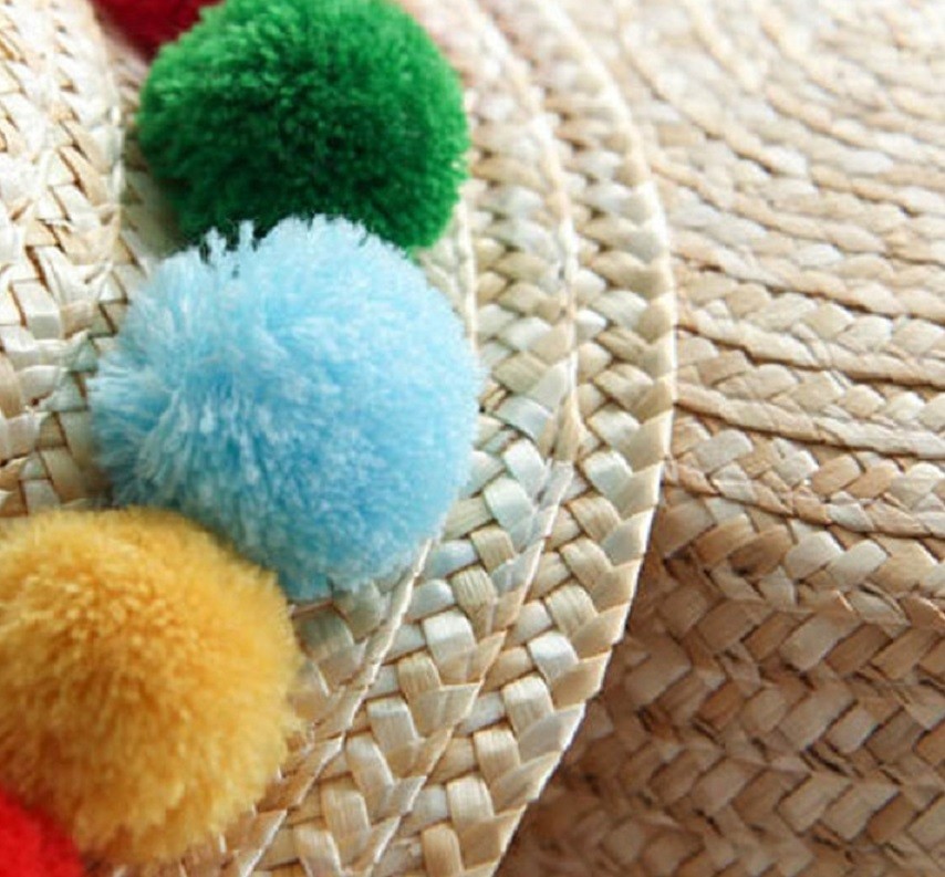 Παιδικό καπέλο από ψάθα με φουντίτσες