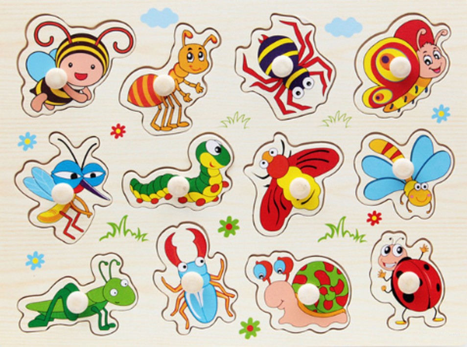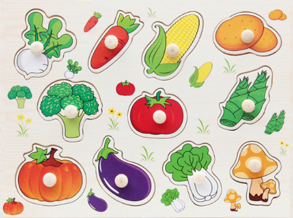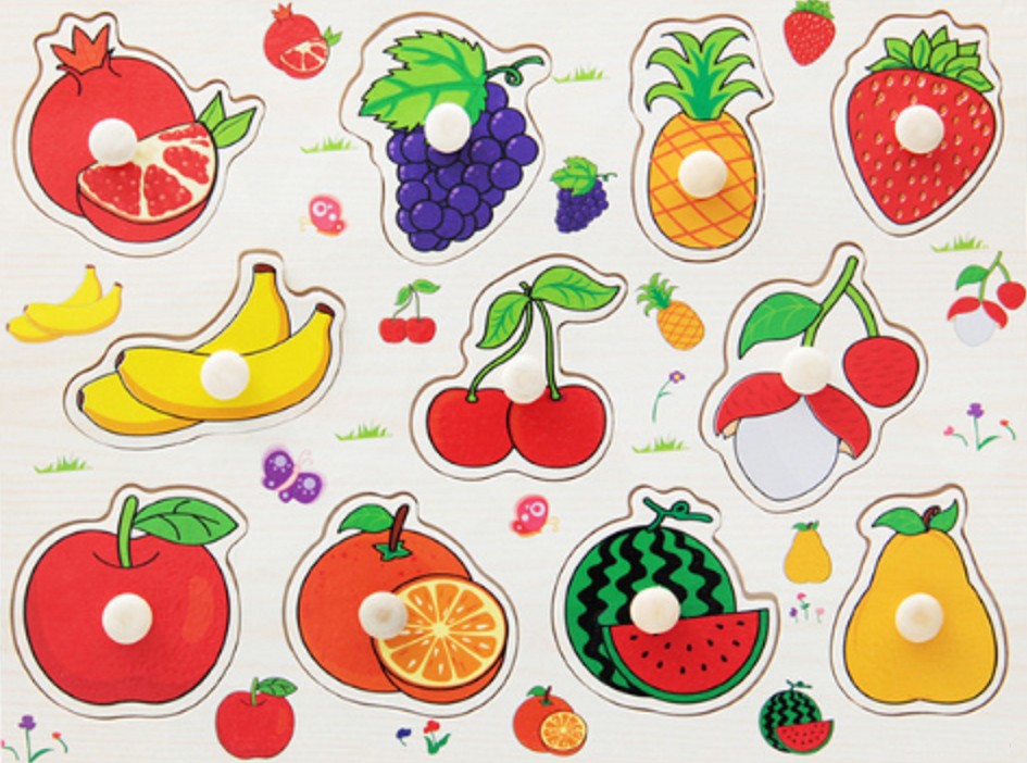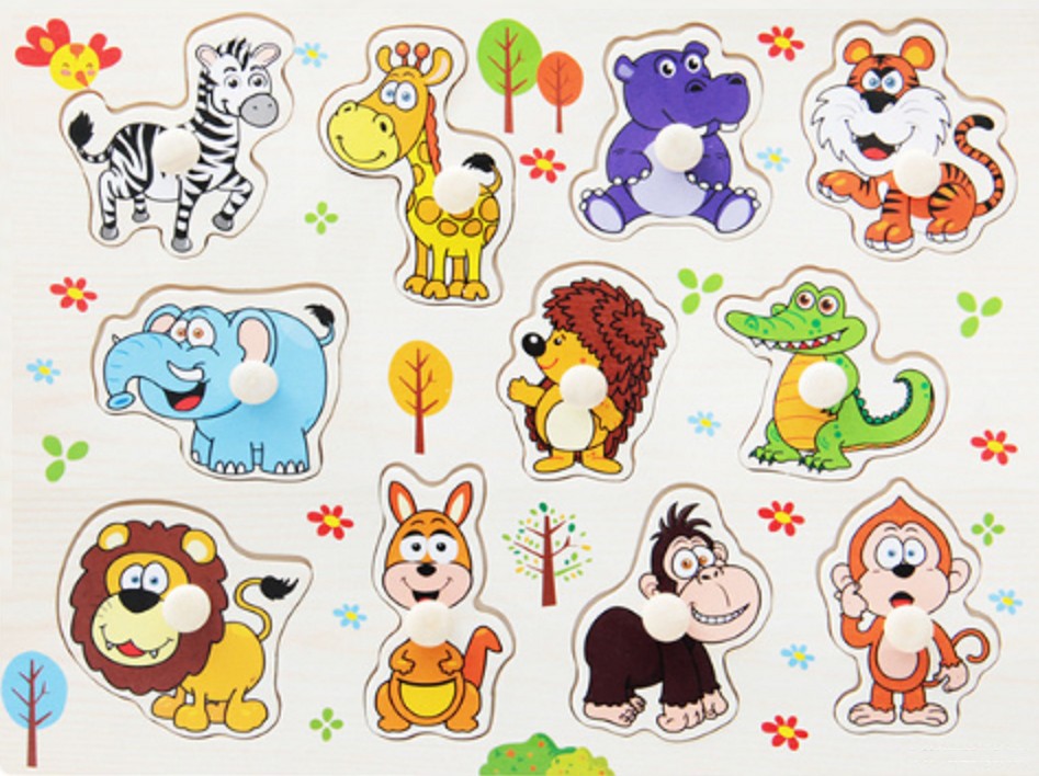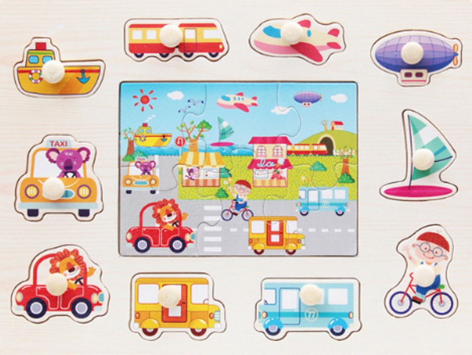 Χρωματιστό παιδικό ξύλινο παζλ με θέμα ζώα, μεταφορικά μέσα, μέλη της οικογένειας, φρούτα κ.λπ.