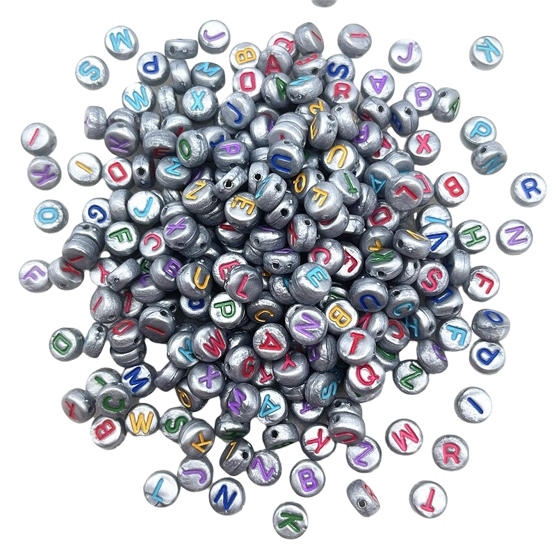 Περαστές χάντρες με εκτύπωση γραμμάτων 100 τεμ