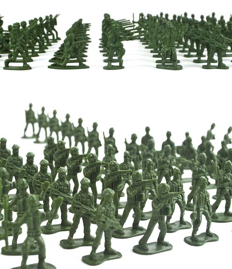 Η συσκευασία περιέχει: 100 τμχ πλαστικών στρατιωτών σε 12 διαφορετικές πόζες.