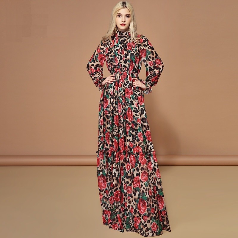 Φλοράλ λεοπάρ γυναικεία φόρεμα