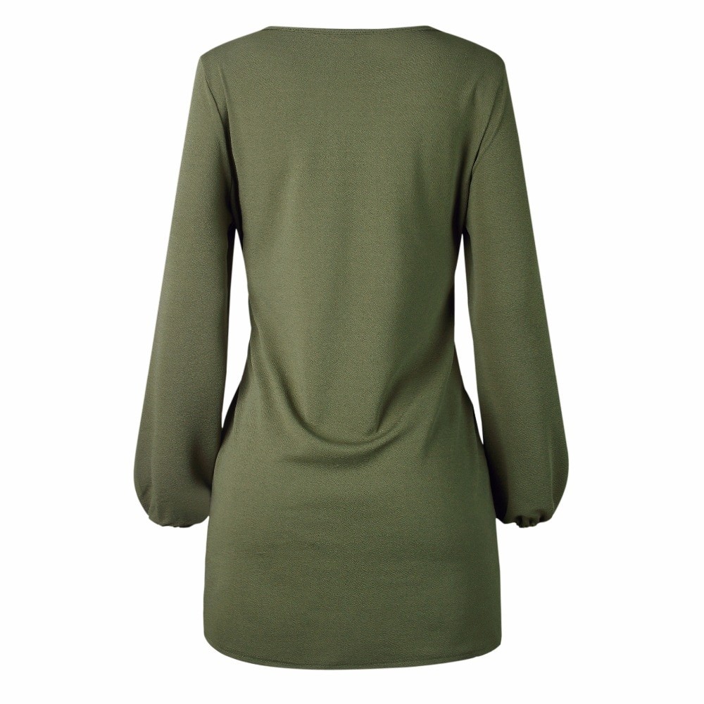 Στρογγυλή λαιμόκοψη και μακριά φουσκωτά μανίκια.