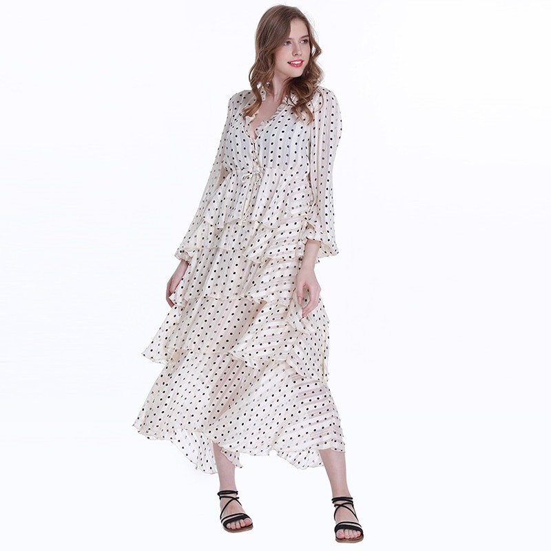 Βαθύ ντεκολτέ και μακριά μανίκια.