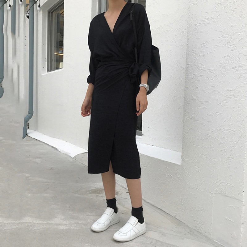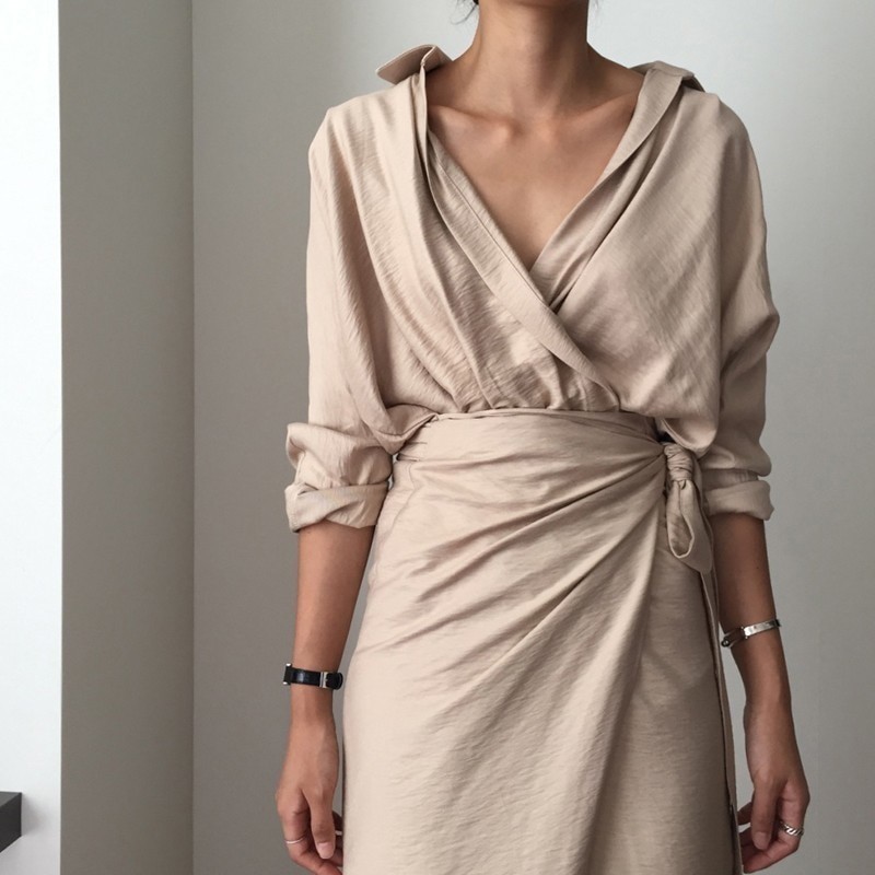 Γυναικείο φόρεμα σε στυλ πουκαμίσου με μακριά μανίκια.