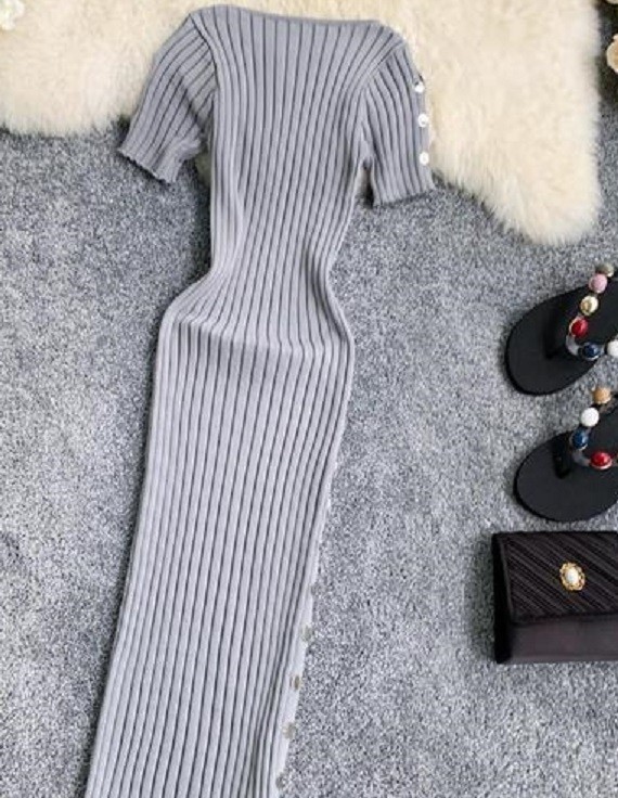 Όμορφο πλεκτό γυναικείο φόρεμα με κοντό μανίκι.