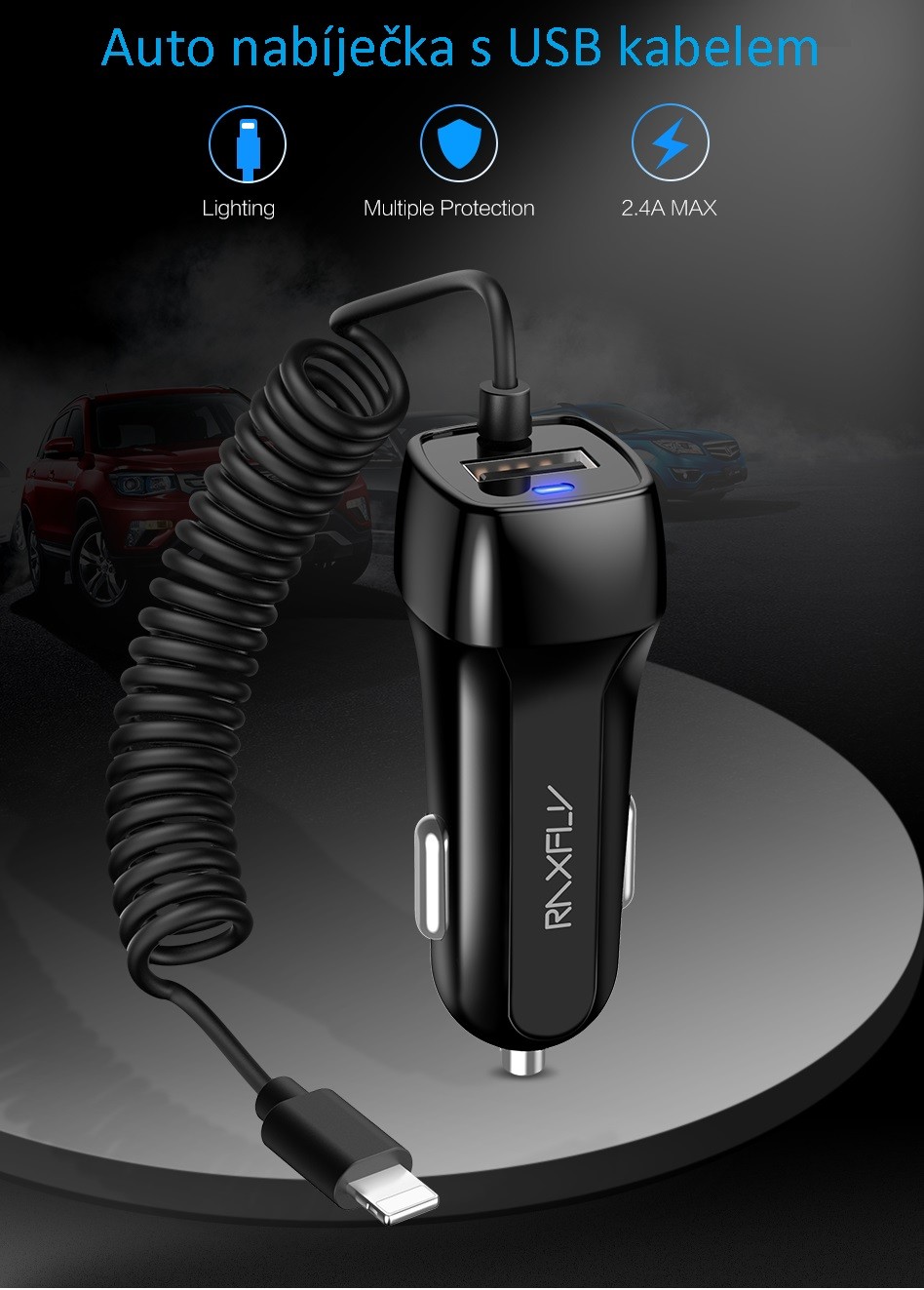 Γενικός φορτιστής αυτοκινήτου με καλώδιο USB.