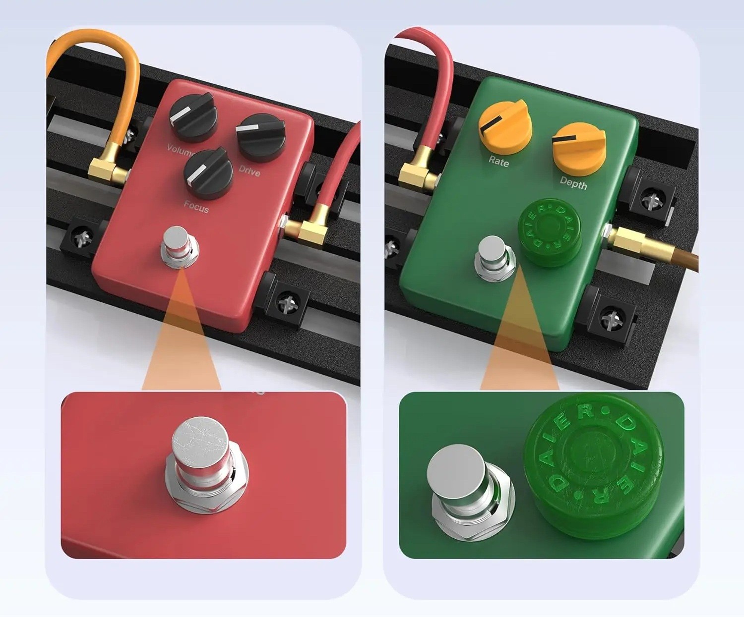 Τα καλύμματα αποτελούν πρακτική λύση για να παρατείνουν τη διάρκεια ζωής των κιθαριστικών πετάλων και ταυτόχρονα να βελτιώσουν την εργονομία τους. Χάρη στη προστατευτική τους λειτουργία, η επιφάνεια των πετάλων παραμένει ανέπαφη ακόμη και κατά την έντονη χρήση. Ο χρωματικός συνδυασμός προσφέρει στο pedalboard μοντέρνα και καθαρή εμφάνιση, την οποία εκτιμούν τόσο οι αρχάριοι όσο και οι προχωρημένοι μουσικοί. Χάρη στην εύκολη εγκατάσταση και την καθολική συμβατότητα, τα καλύμματα είναι κατάλληλα για οικιακή ηχογράφηση, συναυλιακή χρήση και τακτικές πρόβες. Αυτό το αξεσουάρ εξασφαλίζει ότι τα πετάλια σας θα παραμείνουν σε άριστη κατάσταση και έτοιμα για άψογη απόδοση.