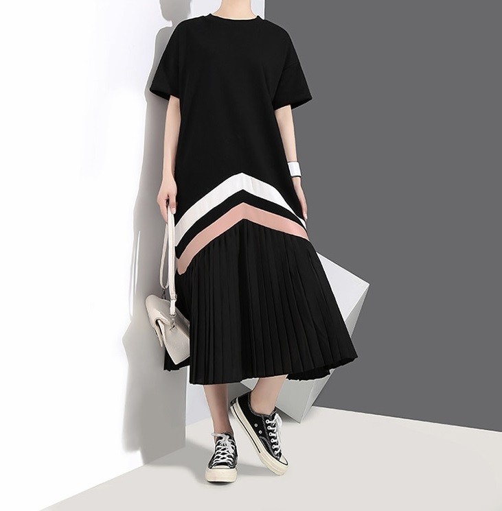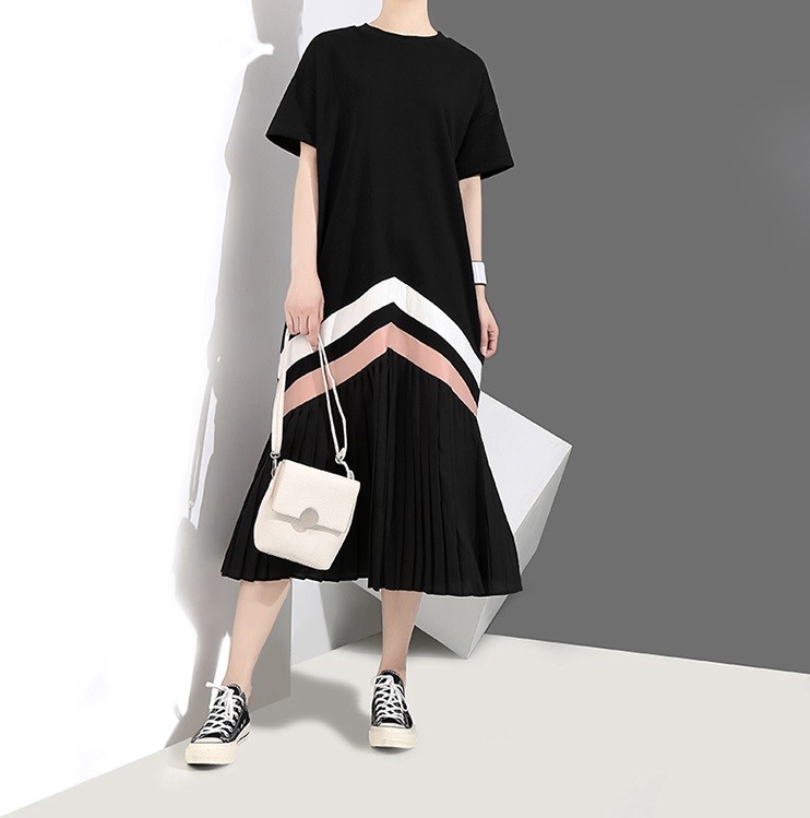 Άνετο φόρεμα ελεύθερης χρήσης κάτω από το γόνατο με κοπή t-shirt.
