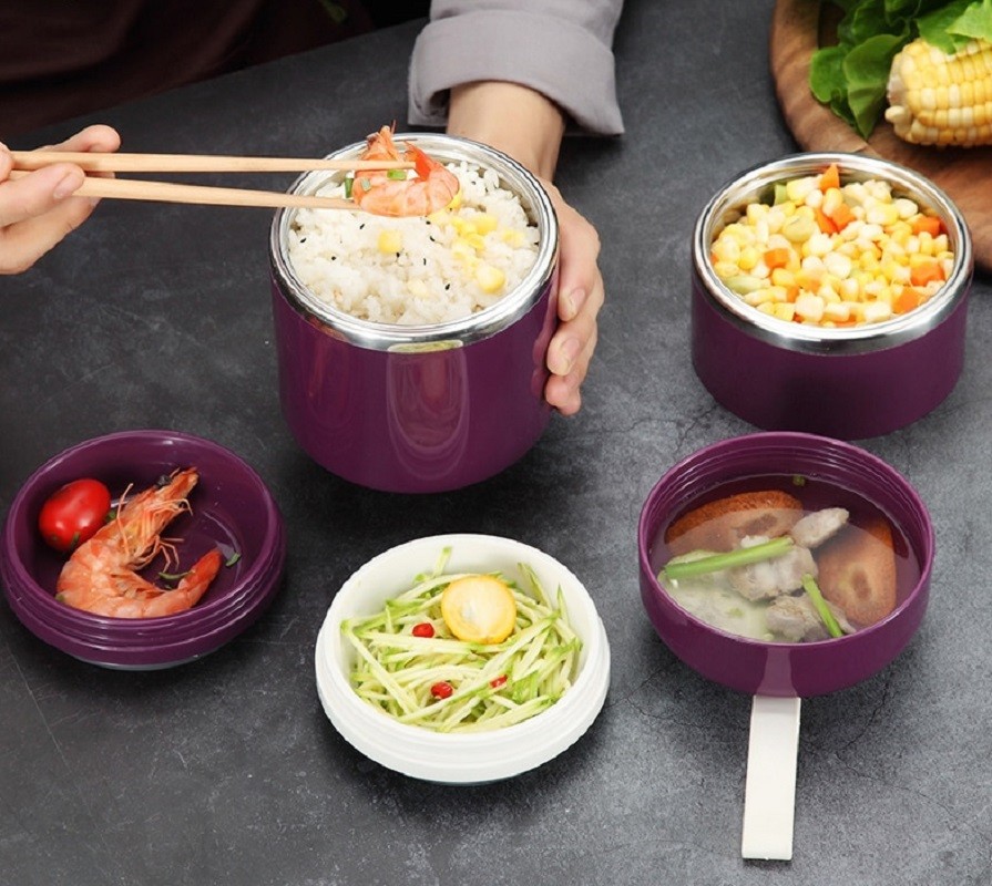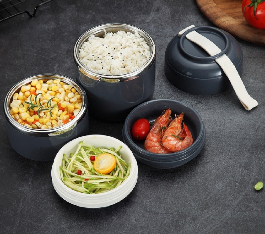 Κυλινδρικό κουτί γεύματος σε παραλλαγές με ένα έως τρία επίπεδα.