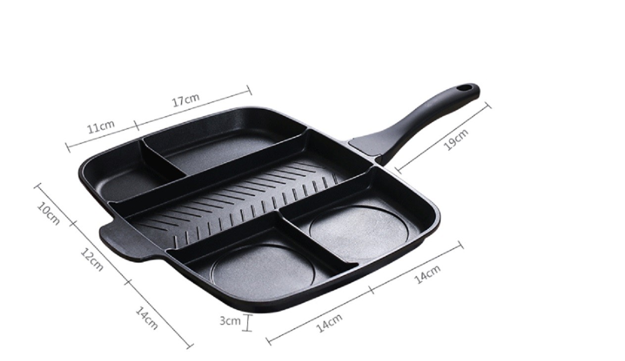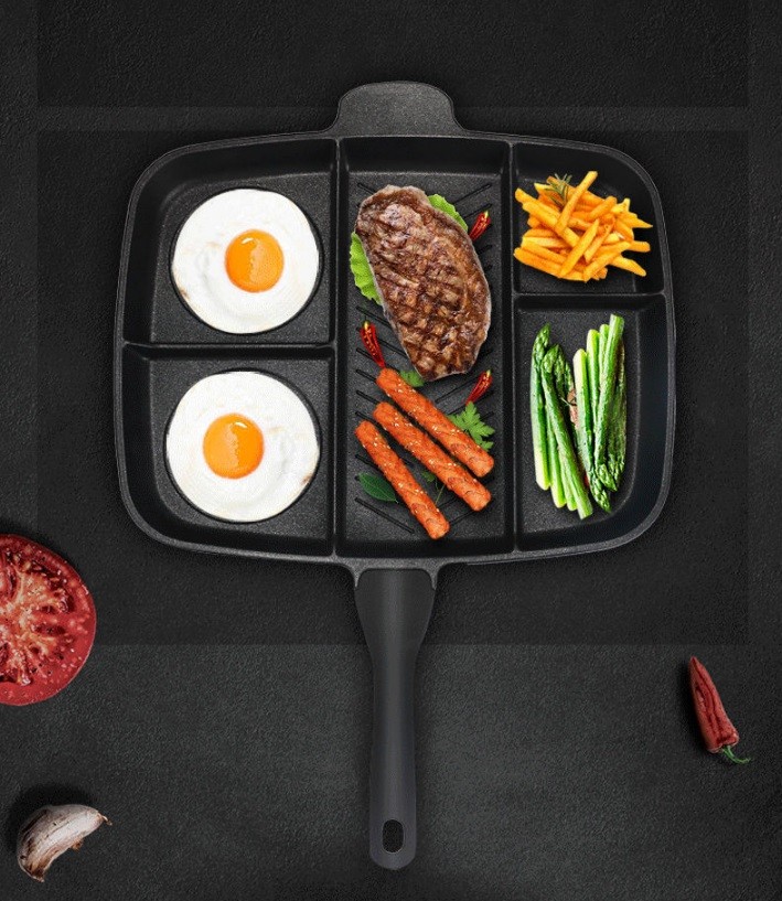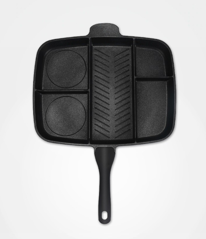 Με αυτό το τηγάνι μπορείτε να ετοιμάσετε το μεσημεριανό σας εύκολα και γρήγορα. Το τηγάνι είναι χωρισμένο σε 5 επιφάνειες ψησίματος.