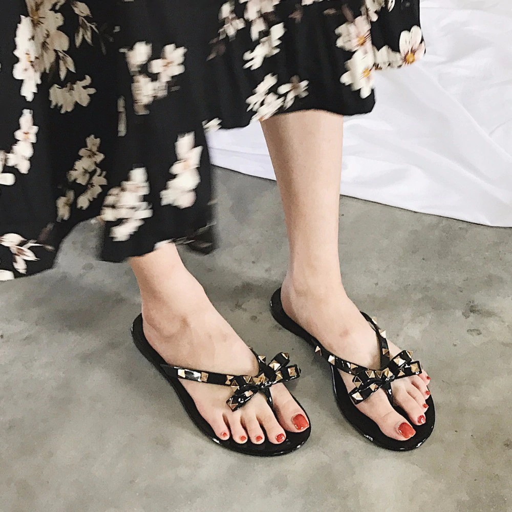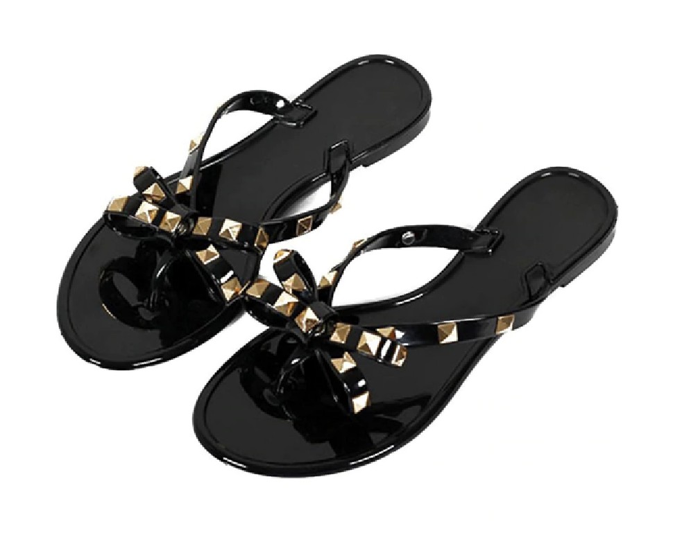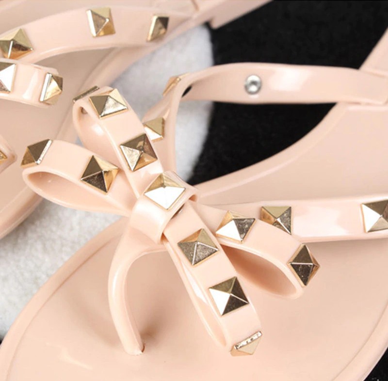 Τα σανδάλια είναι διακοσμημένα με φιόγκο και καρφιά.