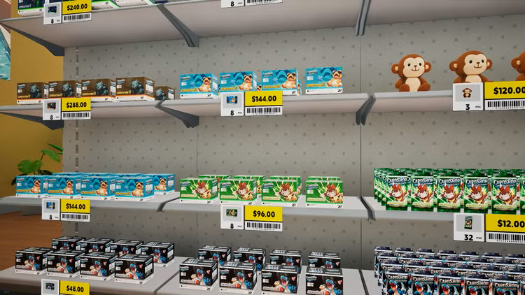 Σχεδιάστε το δικό σας κατάστημα καρτών Pukémoe. Τακτοποιήστε τα ράφια και τα πακέτα καρτών ώστε η εμπειρία αγορών για τους πελάτες να είναι ομαλή και εύκολη.