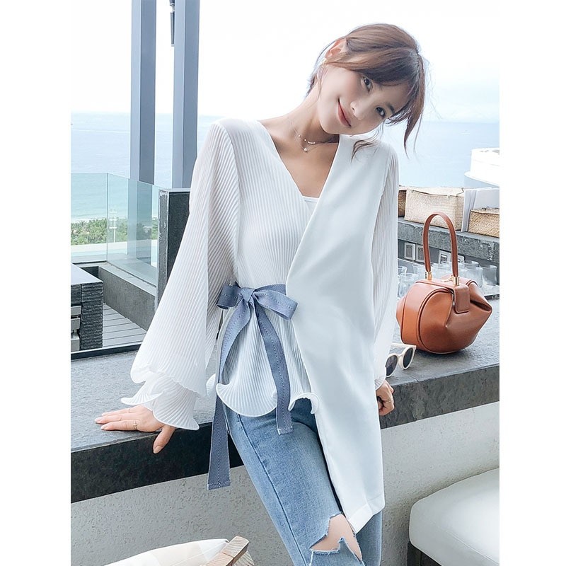 Η μπλούζα είναι διπλωμένη στη μέση, κάτι που την καθιστά κομψή.