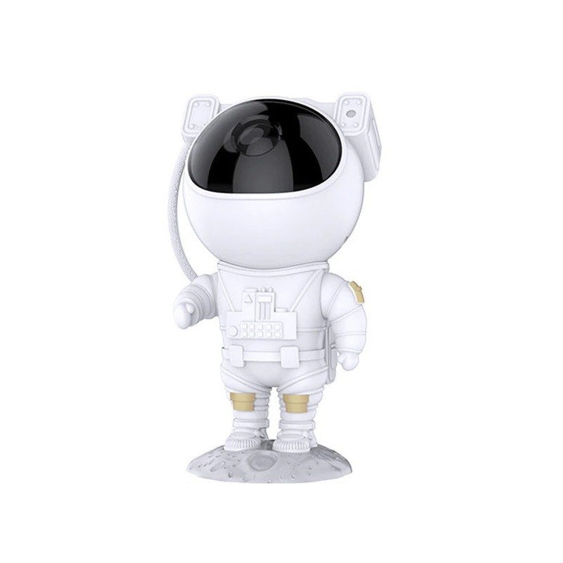 Προτζέκτορας σε σχήμα αστροναύτη, ο οποίος προβάλλει την αστερόεσσα. Δημιουργεί μια εκπληκτική ατμόσφαιρα. Η κεφαλή του αστροναύτη μπορεί να περιστραφεί κατά 360°. Μπορείτε να προβάλλετε τόσο στον τοίχο όσο και στην οροφή. Στη συσκευασία περιλαμβάνεται τηλεχειριστήριο. Μπορείτε να ρυθμίσετε και δύο χρονοδιακόπτες: 45 ή 90 λεπτά. Ο προτζέκτορας μπορεί να χρησιμοποιηθεί και ως λυχνία ύπνου. Διατίθενται 8 διαφορετικά εφέ.