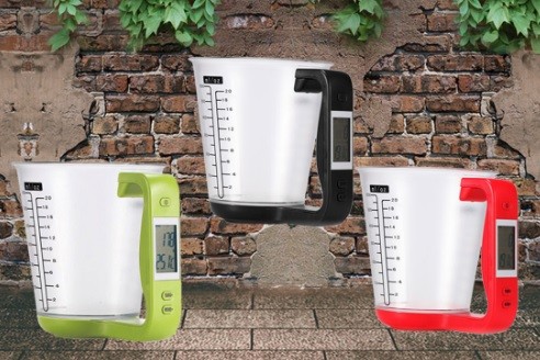 Ψηφιακή ζυγαριά με μεζούρα. Μπορείτε είτε να ζυγίζετε τα τρόφιμα, είτε να μετράτε την ποσότητα με τη μεζούρα.