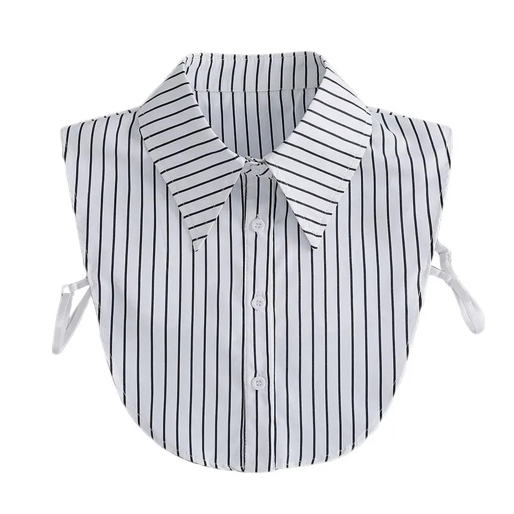 Ψεύτικος γιακάς για γυναίκες λευκός με μαύρες ρίγες Βαμβακερός αποσπώμενος γιακάς Διακοσμητικός γιακάς για πουλόβερ μπλούζες φορέματα Μόδα