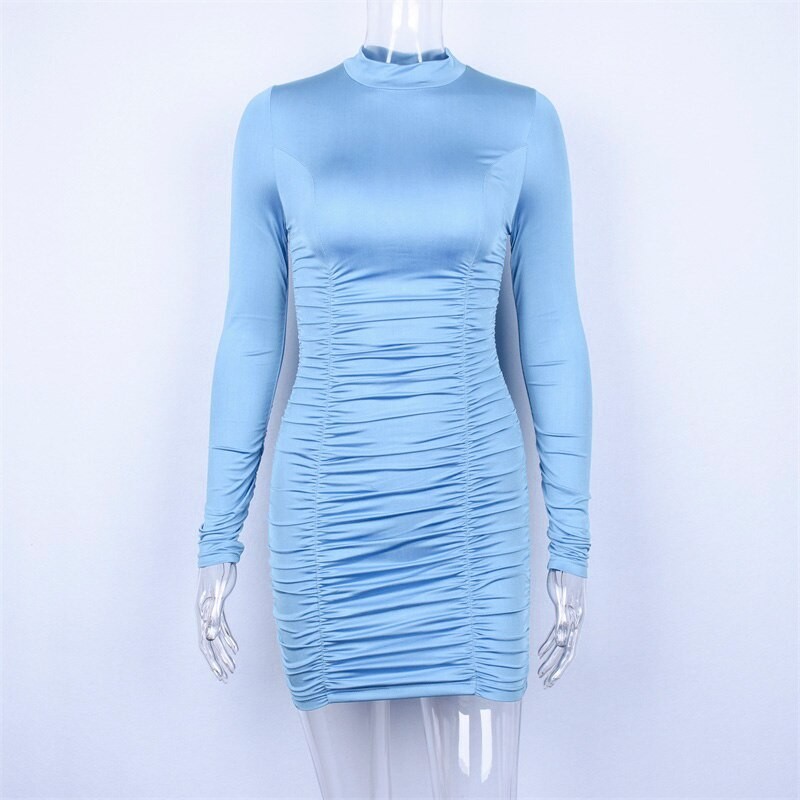 Κοντό ελαστικό μίνι φόρεμα με ρολάκι και μακριά μανίκια.