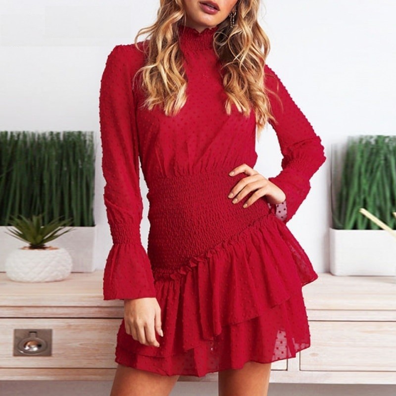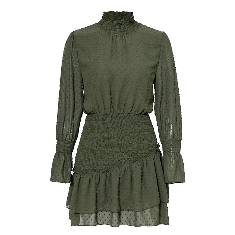 Ρομαντικό φθινοπωρινό ρολό φόρεμα με στρωτή φρου φρου φούστα.