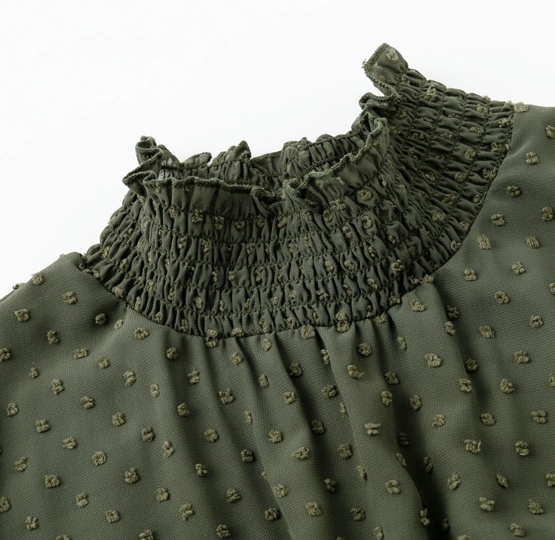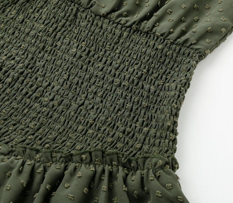 Μακριά μανίκια, ελαστική μέση, πρωτότυπο σχέδιο υφάσματος.