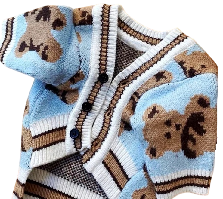 Σακάκι για σκύλους 7,5–10 kg Μέγεθος XXL 55 cm στήθος 42 cm μήκος Ζεστό πλεκτό ρούχο με εικόνες αρκουδάκια και κλείσιμο με τρία κουμπιά