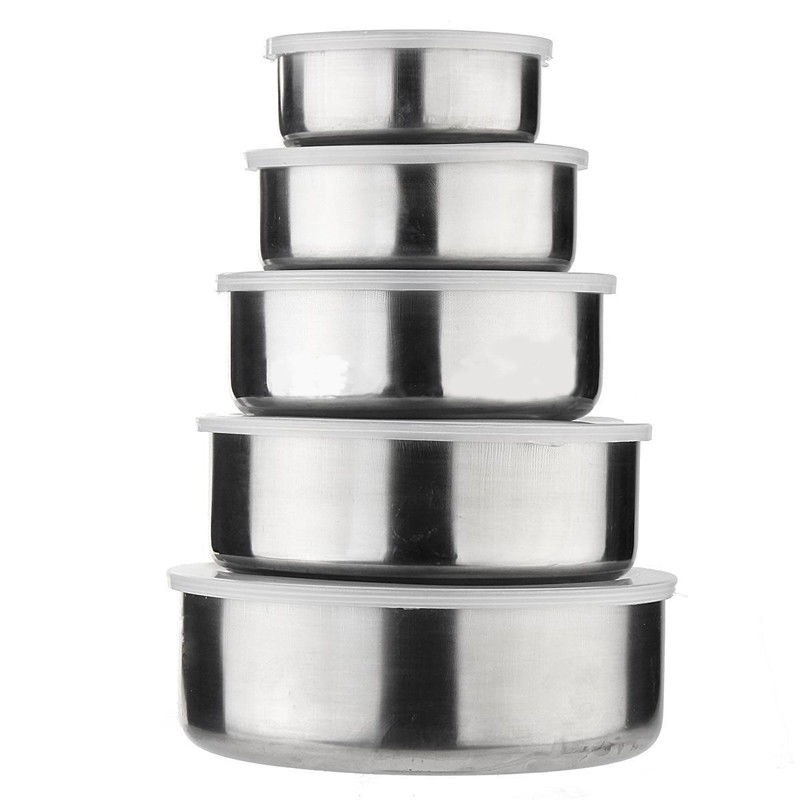 Ποιοτικά ανοξείδωτα δοχεία με καπάκι σε πέντε μεγέθη.