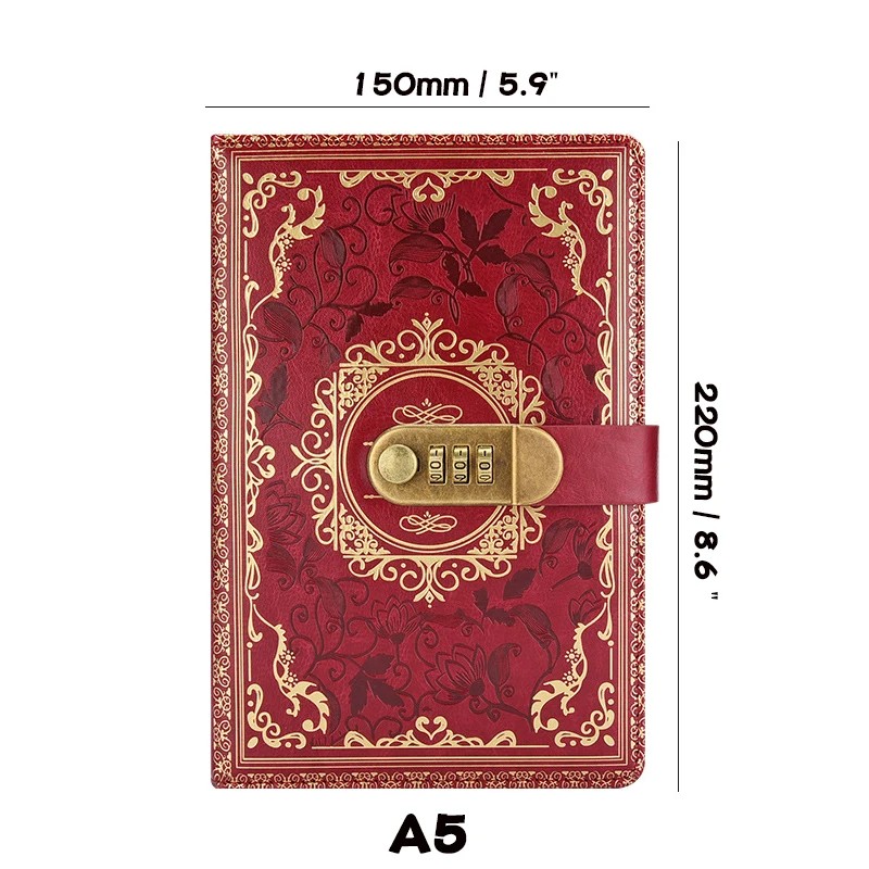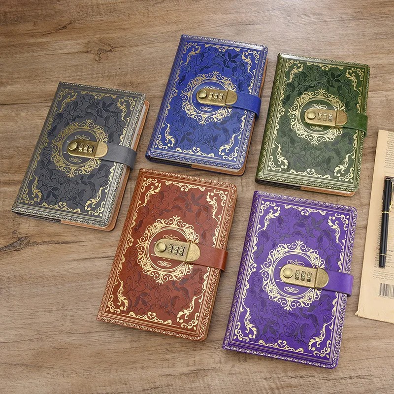 Σημειωματάριο A5 με μεταλλικό κλείδωμα με αριθμητικό κωδικό 220x150 mm Πολύχρωμο ημερολόγιο με σχέδια Εμπνευσμένο μπλοκ σημειώσεων με προστασία ιδιωτικότητας