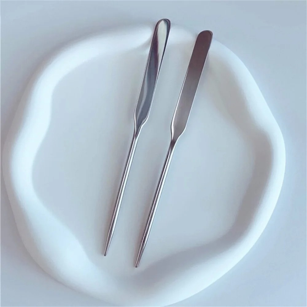 Ανοξείδωτες σπάτουλες και αναδευτήρες για υγιεινή εφαρμογή και ανάμειξη μακιγιάζ, κρεμών ή τόνων. Πρακτικό σετ 2 τεμαχίων. Πλήρης περιγραφή