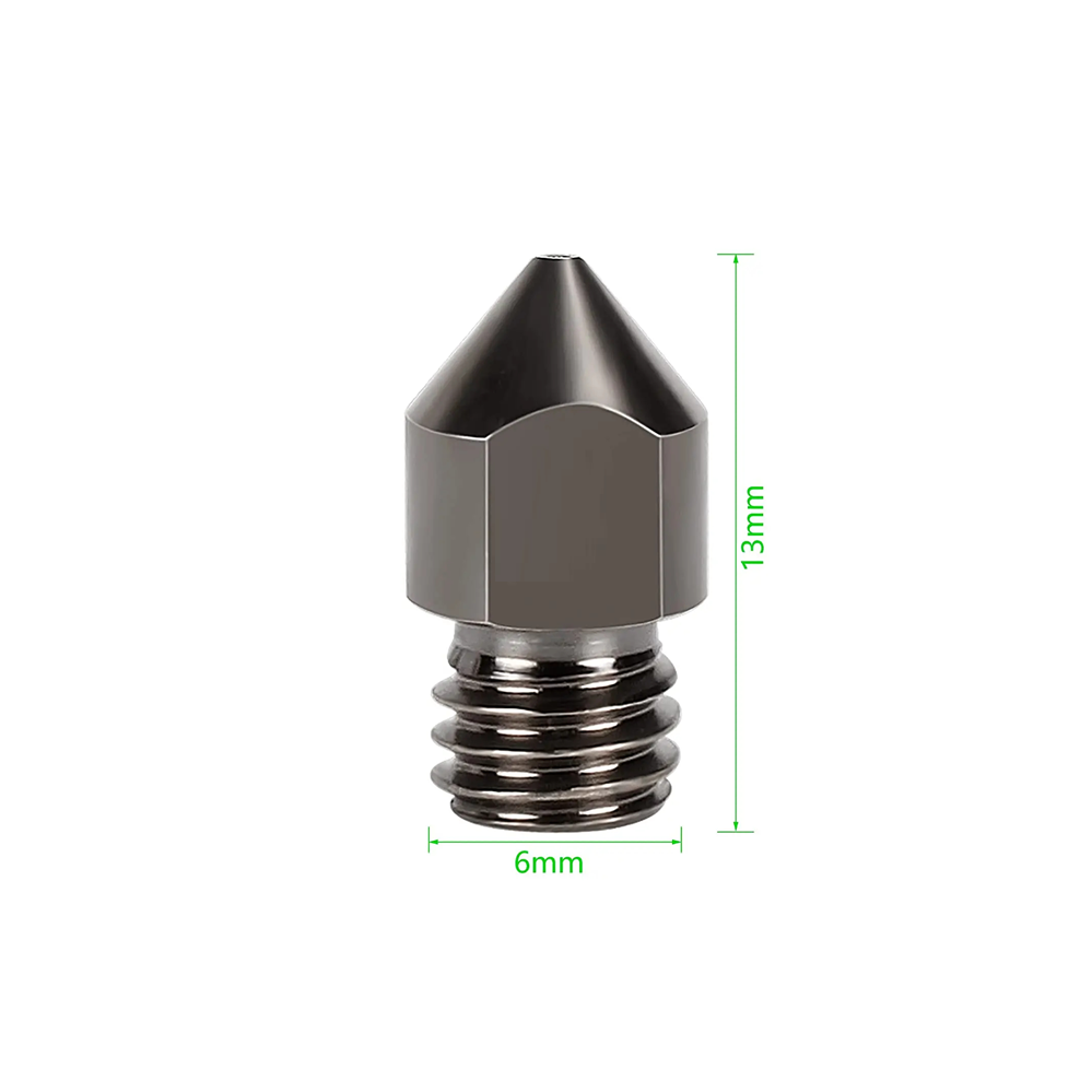 Αυτό το σέτ ακροφυσίων είναι η ιδανική επιλογή για χρήστες που αναζητούν μια ισορροπία μεταξύ ταχύτητας εκτύπωσης και επαρκών λεπτομερειών του μοντέλου. Η διάμετρος 0,6 mm επιτρέπει την εκτύπωση παχύτερων στρωμάτων και μεγαλύτερης ποσότητας υλικού σε μικρότερο χρόνο, κάτι που είναι κατάλληλο για μεγαλύτερα μοντέλα και ανθεκτικά λειτουργικά μέρη. Τα ακροφύσια είναι κατασκευασμένα από κατεργασμένο ατσάλι, γεγονός που τα καθιστά ανθεκτικά στη μακροχρόνια χρήση και σε υψηλές θερμοκρασίες. Η σπείρα M6 εξασφαλίζει εύκολη βίδωση στις περισσότερες κοινές κεφαλές εκτύπωσης που προορίζονται για νήμα 1,75 mm. Το σέτ των πέντε τεμαχίων σας παρέχει σιγουριά ότι θα έχετε πάντα έτοιμο ένα εφεδρικό ακροφύσιο όταν χρειαστεί.