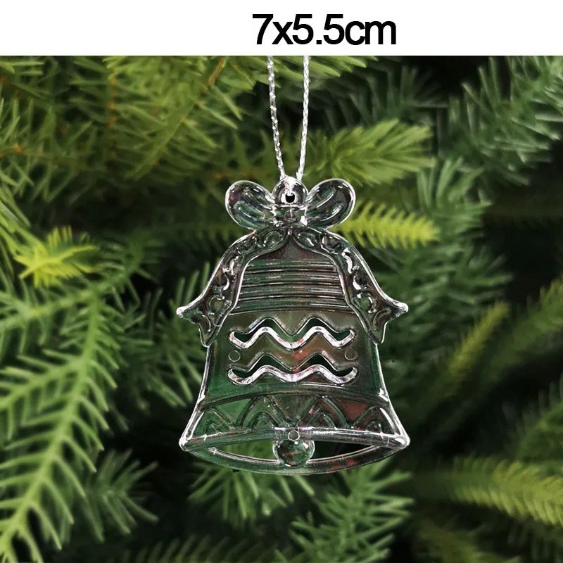 Σέτ 5 τμχ διαφανών πλαστικών διακοσμήσεων για χριστουγεννιάτικο δέντρο σε σχήμα καμπάνας 7 x 5,5 εκ.