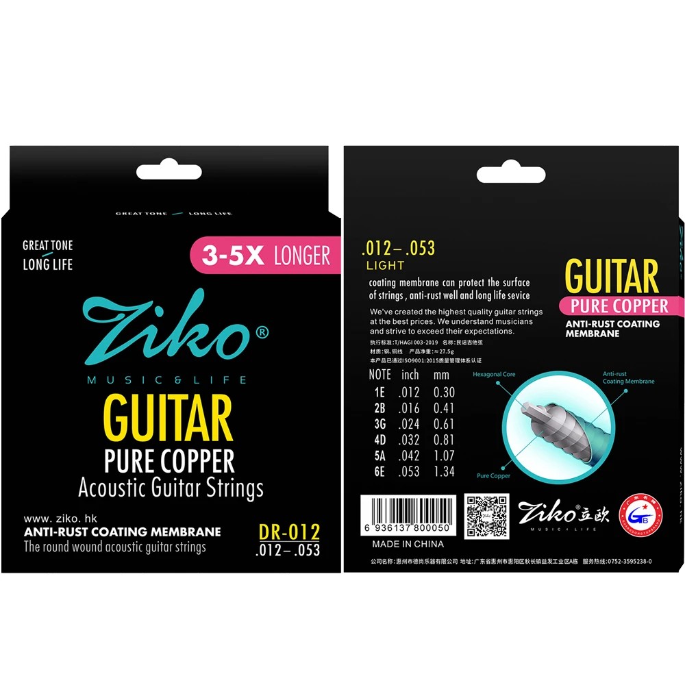 Σετ χορδών για ακουστική κιθάρα DR-012 Έξιγωνο πυρήνα από καθαρό χαλκό με αντιδιαβρωτική επίστρωση Καθαρός ζεστός ήχος Μακρά διάρκεια Σταθερή χορδιστική