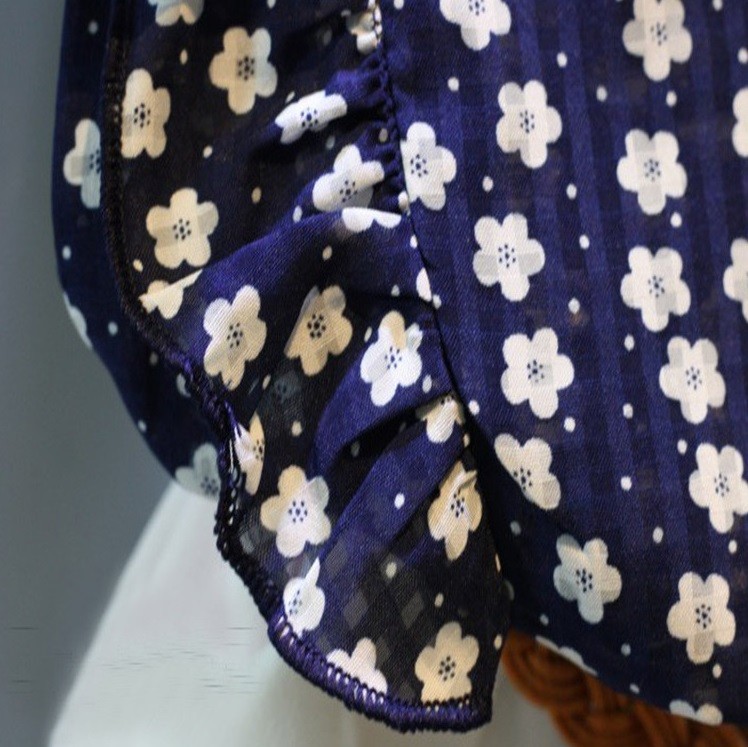 Το σετ αποτελείται από μπλε αμάνικο μπλουζάκι με λουλούδια και λευκά σορτσάκια με ζώνη.
