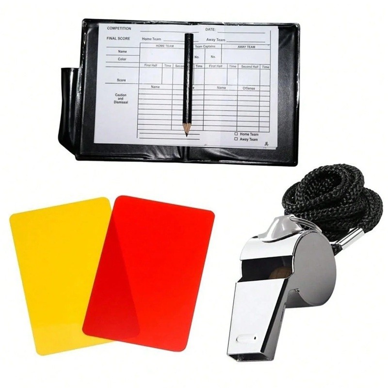 Σετ ποδοσφαιρικών διαιτητών με μεταλλική σφυρίχτρα Κίτρινη και κόκκινη κάρτα Θήκη με μολύβι Πρακτικός εξοπλισμός για διαιτητές αγώνων
