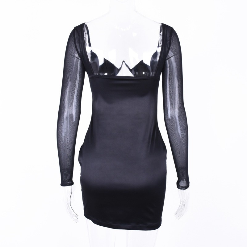 Γυναικείο φόρεμα με μακριά διαφανή μανίκια.