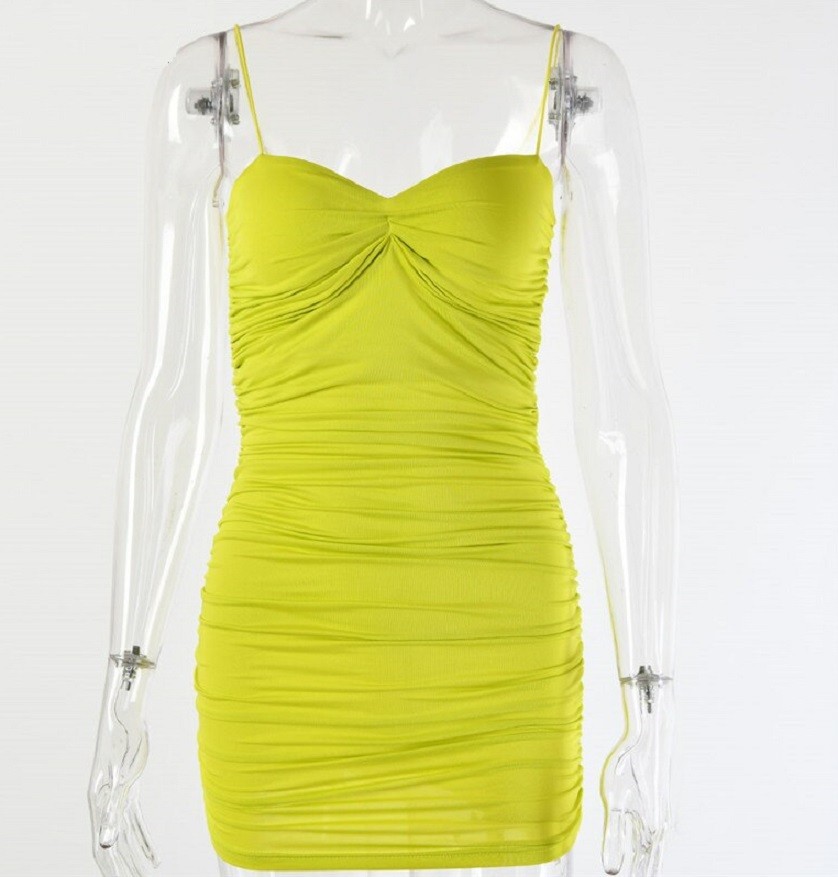 Γυναικείο σέξι καλοκαιρινό μίνι φόρεμα με λεπτές τιράντες.