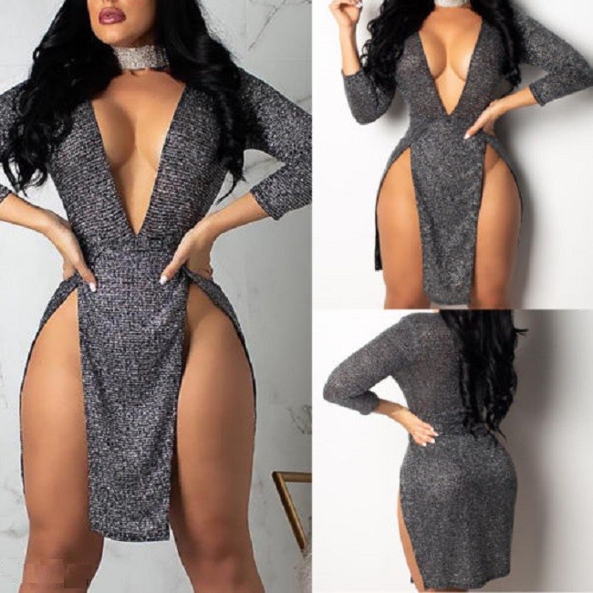 Γυναικεία λαμπερά σέξι φορέματα με βαθύ ντεκολτέ και σκισίματα.