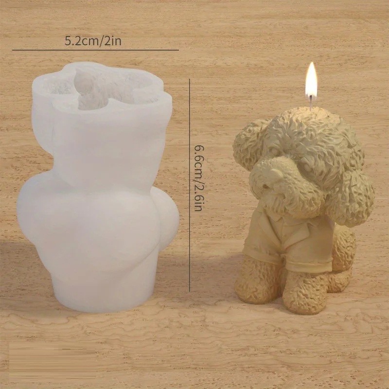 Λεπτομερής σιλικόνικη φόρμα για κεριά, σαπούνια ή σοκολάτα σε σχήμα σκύλου κανίς σε κομψό σακάκι και πουκάμισο, ιδανική για δημιουργική απασχόληση. Πλήρης περιγραφή