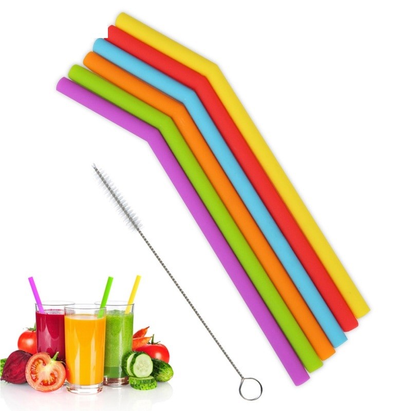 Σιλικόνινα καλαμάκια με βουρτσάκι 6 τεμ