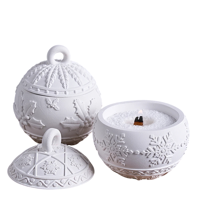 Αυτή η υψηλής ποιότητας σιλικονούχα φόρμα σε σχήμα χριστουγεννιάτικης μπάλας με λεπτό ανάγλυφο φύλλων, νιφάδων και κλαδιών προορίζεται για δημιουργική κατασκευή κεριών, διακοσμητικών, δοχείων ή διακοσμητικών από διάφορα υλικά. Χάρη στην ακριβή μορφοποίηση δημιουργεί τέλεια λεπτομερή επιφάνεια που θυμίζει κλασικές χριστουγεννιάτικες μπάλες.
