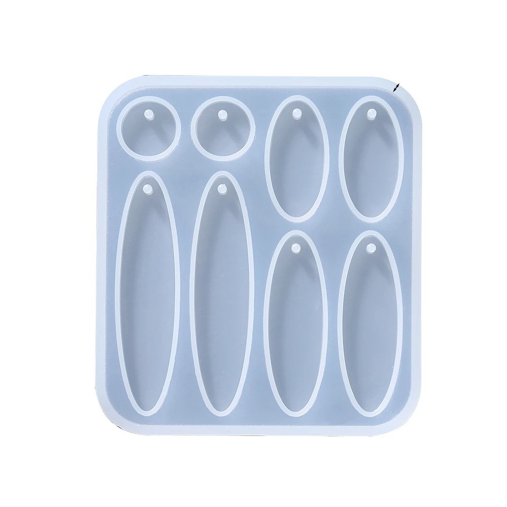 Σιλικόνινη φόρμα 7 x 7,8 εκ. με ωοειδείς κοιλότητες και τρύπες για οπές. Κατάλληλη για χύτευση κρεμαστών, σκουλαρικιών και πρωτότυπων διακοσμήσεων από ρητίνη. Πλήρης περιγραφή