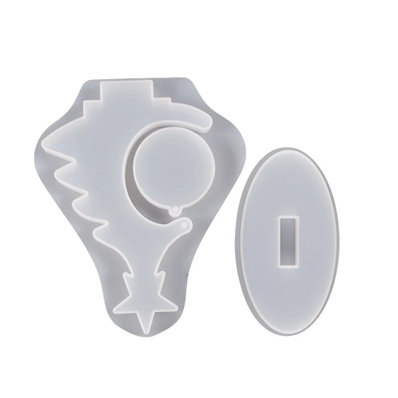 Αυτή η σέτ σιλικόνινων φορμών προορίζεται για τη δημιουργία υπέροχης χριστουγεννιάτικης διακόσμησης σε σχήμα δέντρου με αστέρι και στρογγυλής κρεμάστρας στη μέση, η οποία μπορεί να χρησιμεύσει ως χώρος για φωτογραφία ή για την τοποθέτηση μικρότερης διακόσμησης. Περιλαμβάνει επίσης φόρμα για σταθερή βάση, χάρη στην οποία η έτοιμη διακόσμηση θα στέκεται σταθερά. Το τελικό προϊόν φαίνεται κομψό και με γούστο – ιδανικό ως χριστουγεννιάτικη διακόσμηση ή χειροποίητο δώρο.