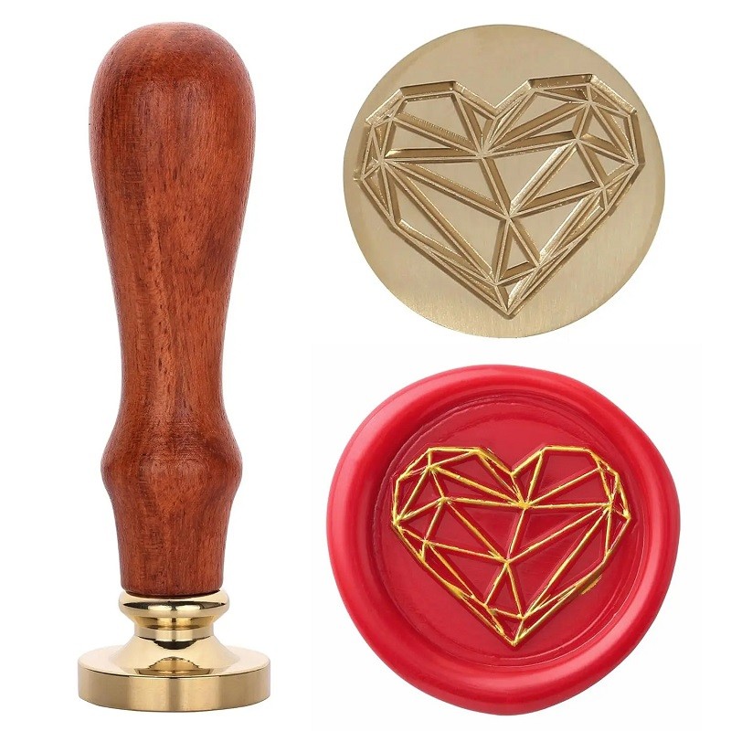 Κομψή σφραγίδα με σχέδιο και ξύλινη λαβή για τη δημιουργία στυλάτων και προσωπικών σφραγίδων σε γράμματα, προσκλήσεις και διακοσμήσεις. Πλήρης περιγραφή